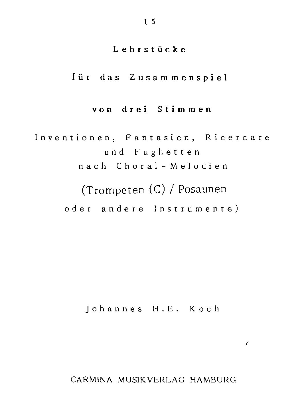 15 Lehrstücke für das Zusammenspiel von drei Stimmen – Inventionen, Fantasien, Ricercare und Fughetten nach Choral-Melodien