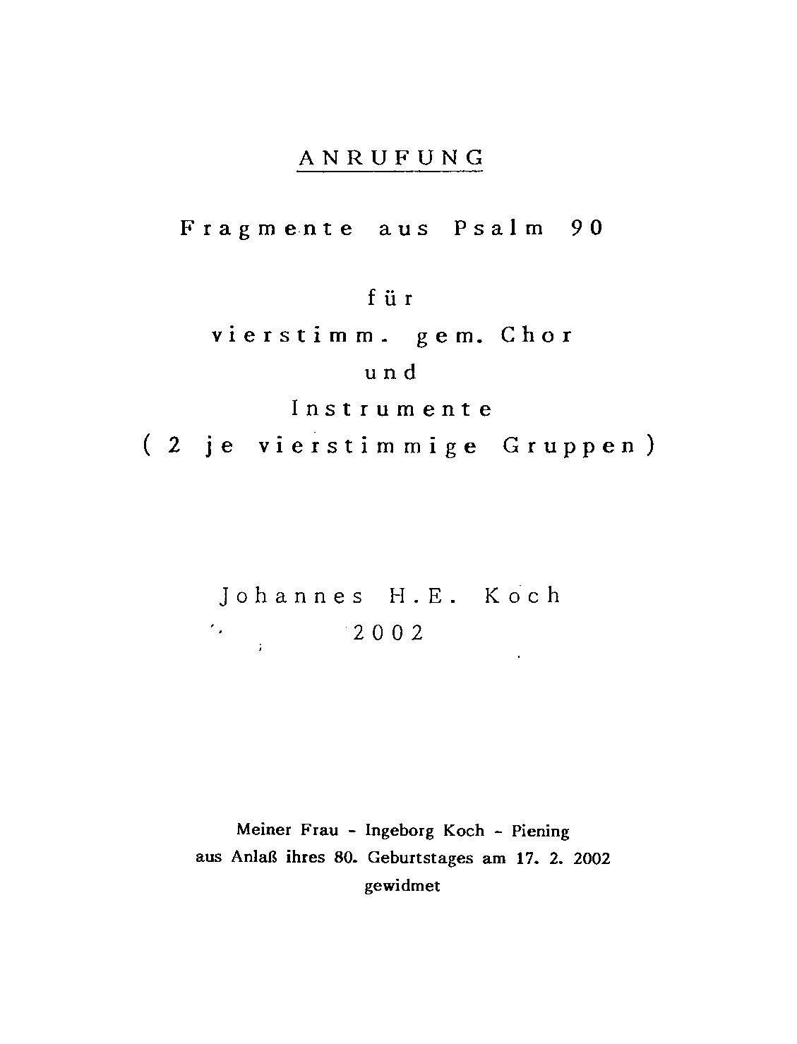 Anrufung – Fragmente aus Psalm 90 für vierstimm. gem. Chor und Instrumente (2 je vierstimmige Gruppen)