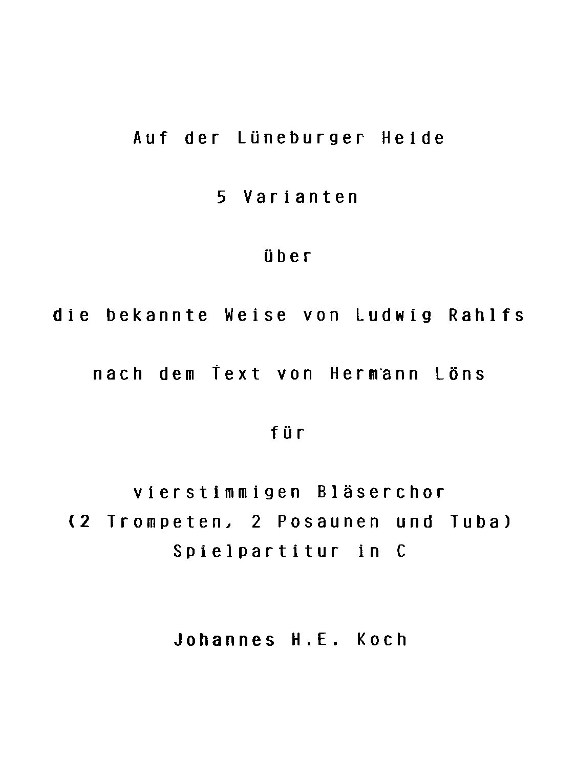 Auf der Lüneburger Heide – 5 Varianten über die bekannte Weise von Ludwig Rahlfs nach dem Text von Hermann Löns für vierstimmigen Bläserchor (2 Trompeten, 2 Posaunen und Tuba) – Spielpartitur in C
