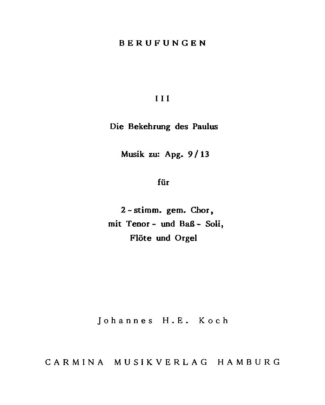 Berufungen III – Die Bekehrung des Paulus – Musik zu: Apg. 9/13 für 2-stimm. Gem. Chor, mit Tenor- und Bass-Soli, Flöte und Orgel