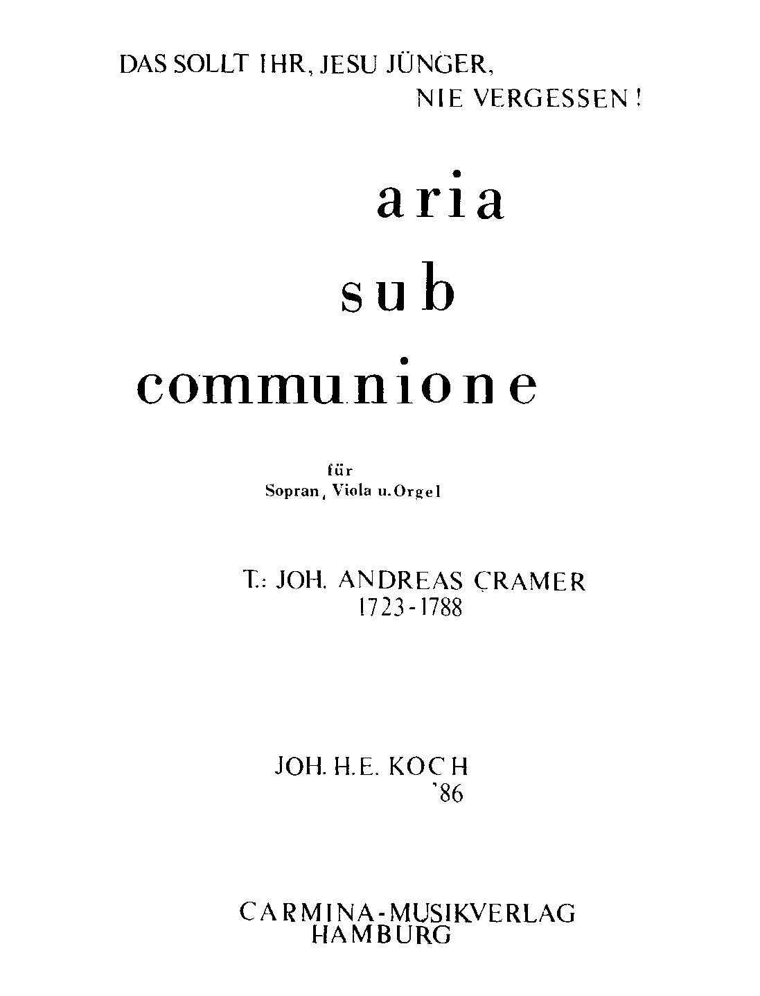 Das sollt ihr, Jesu Jünger, nie vergessen! – aria sub communione für Sopran, Viola u. Orgel