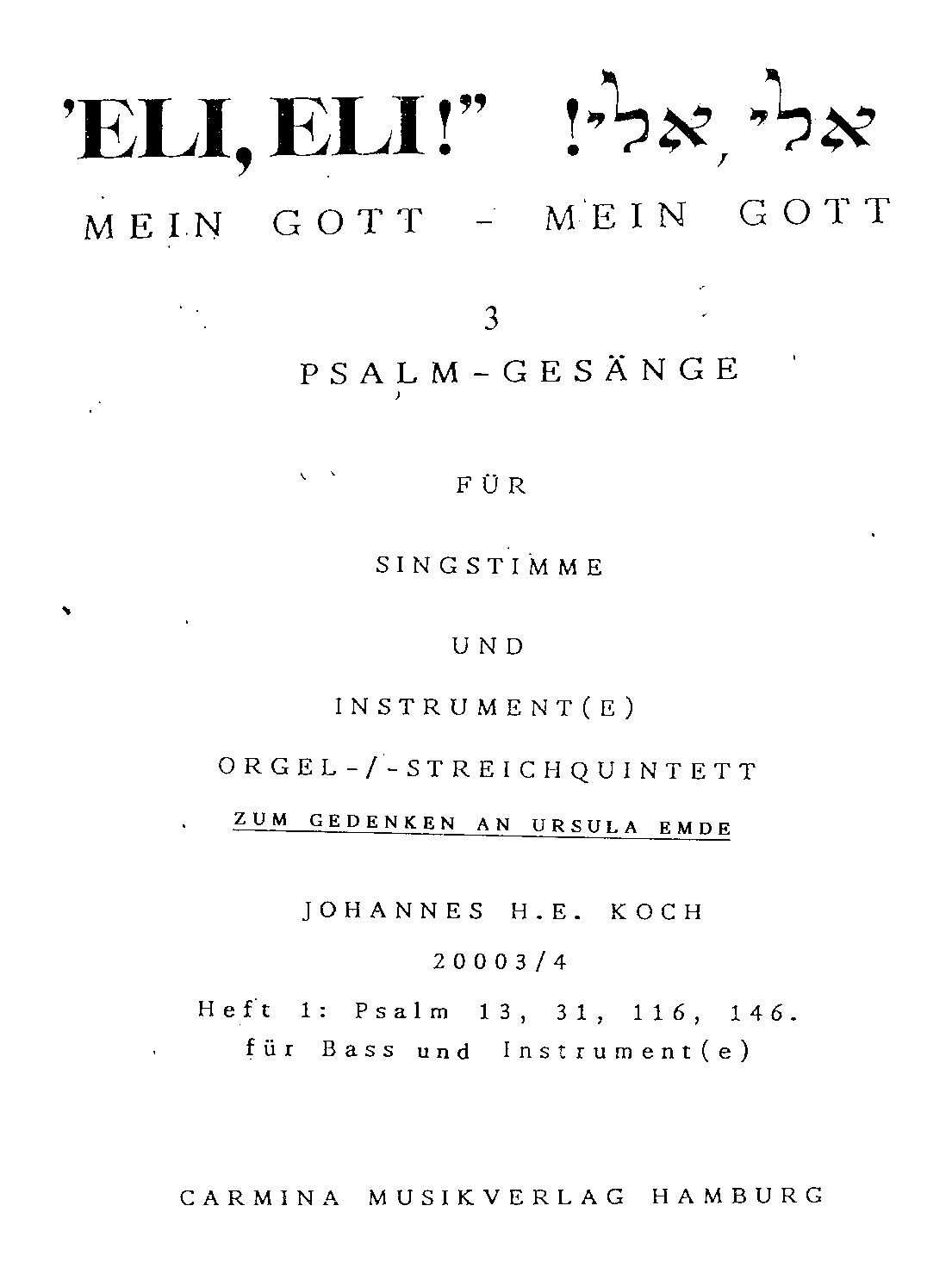 „Eli, Eli!“ – Mein Gott – mein Gott – 3 Psalm-Gesänge für Singstimme und Instrument(e) – Orgel/Streichquintett