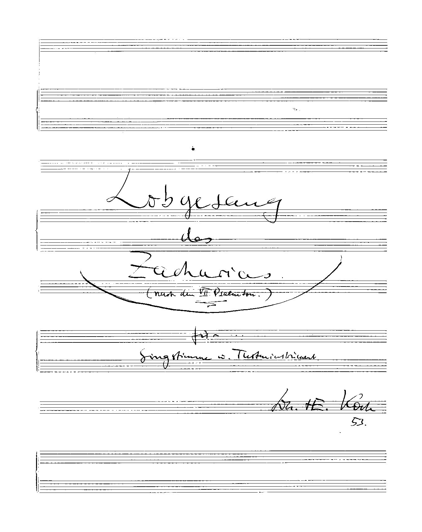 Lobgesang des Zacharias (nach dem VII. Psalmton) für Singstimmen u. Tasteninstrument