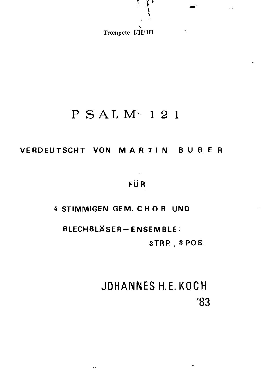 Psalm 121 verdeutscht von Martin Buber für 4-stimmigen gem. Chor und Blechbläser-Ensemble: 3 Trp., 3 Pos