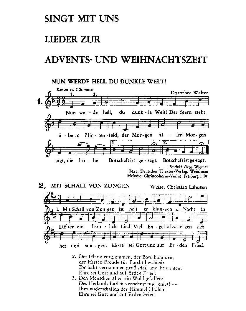 Singt mit uns Lieder zur Advent- und Weihnachtszeit
