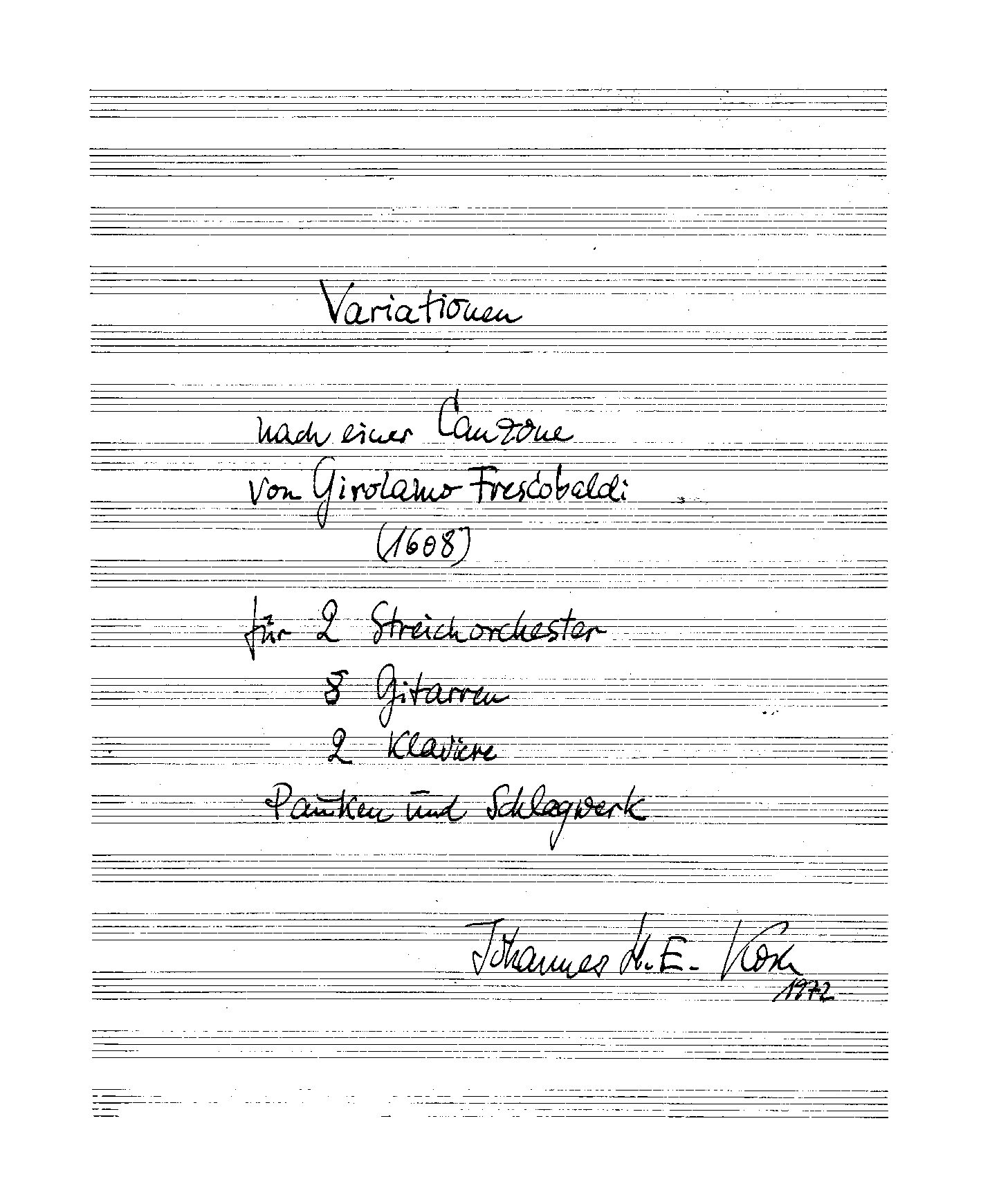 Variationen nach einer Canzone von Girolamo Frescobaldi (1608) für 2 Streichorchester, 8 Gitarren, 2 Klaviere, Pauken und Schlagwerk